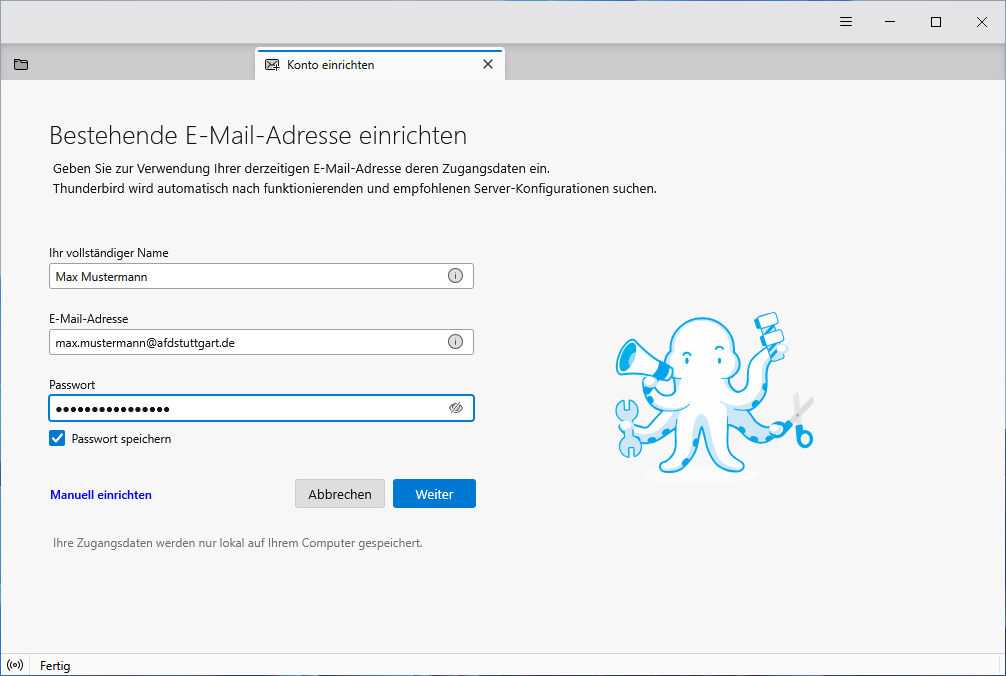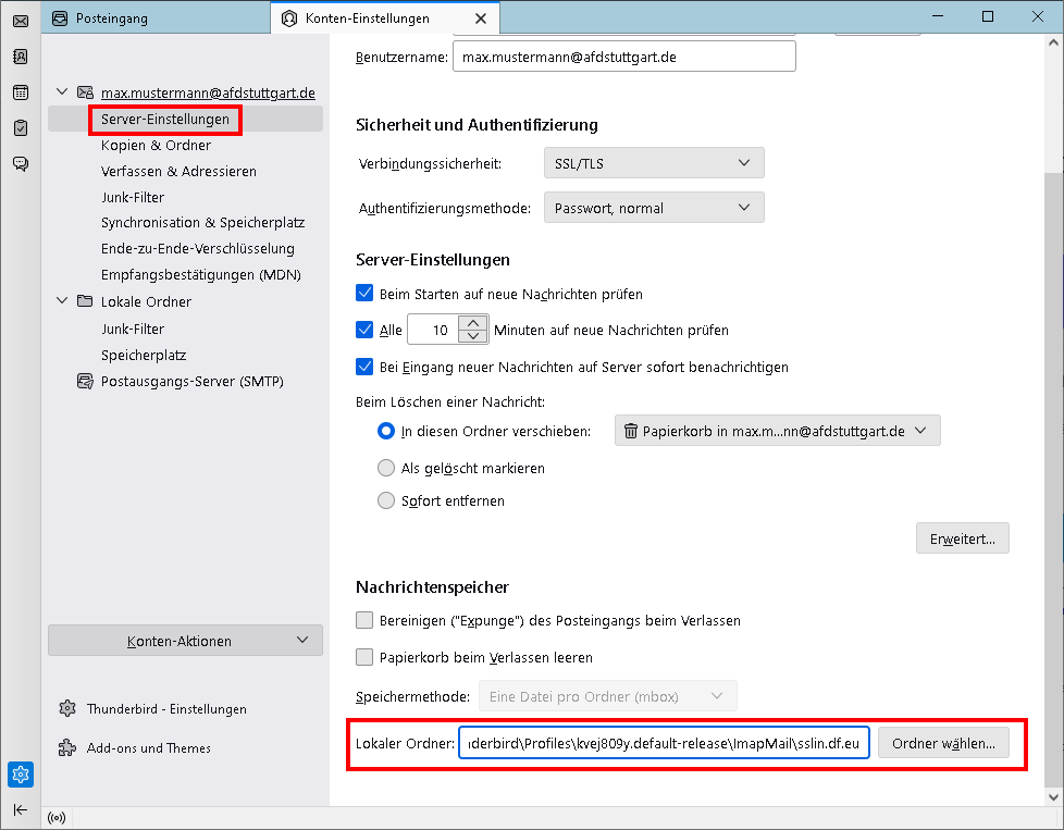 Schreiben Sie an postmaster@afdstuttgart.de, wenn es Probleme mit Ihrem E-Mail-Konto gibt oder Sie sonstige Fragen haben. Beachten Sie auch folgende Punkte: